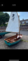 This is the swing keel, gaff rigged version of the YM Senior 16 feet long.